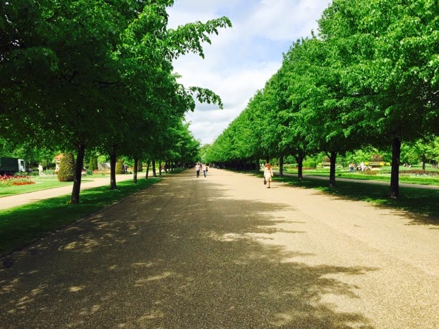 Lontoon puistot, niin, ne on yksin kertaisesti ihania. Nyt kevään reissulla meille sattui upeat säät, parhaimmillaan elohopea huiteli reippaasti yli kahdenkymmenen asteen ja tarkeni pelkällä kesämekolla. Kävellessä tuli hiki, ja oi, miten ihanaa oli lausua sanat, huh huh ompas kuuma!!! Joten päivisin oli pakko puistoilla. Suomessa kun kelit on tätä paskaluokkaa edelleenkin, niin ei vain voinut olla sisätiloissa noissa lämpötilalukemissa. Se olisi ollut jo ihan synti.